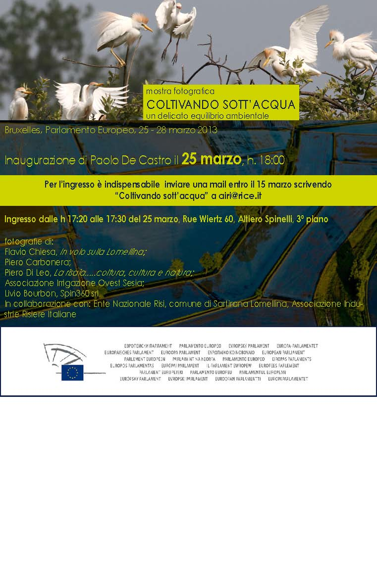 L'Ente Nazionale Risi, in collaborazione con l'Associazione Industrie Risiere Italiane ed il Comune di Sartirana Lomellina, ha organizzato una mostra fotografica presso il Parlamento europeo. La mostra si pone l’obiettivo