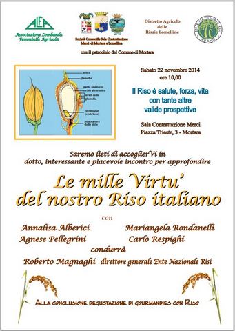 Quali segreti può ancora svelarci il nostro riso? Per conoscerne ed apprezzarne le doti appuntamento a Mortara sabato 22 novembre presso la borsa merci. Il Direttore Generale dell'Ente, dott. Magnaghi, ci guiderà in un percorso alla scoperta delle mille virtù del riso italiano.