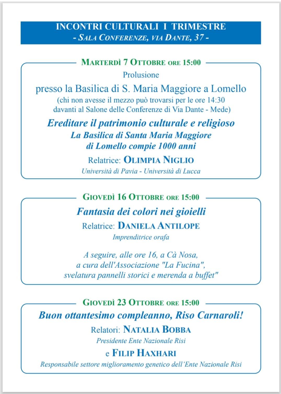 Appuntamento a giovedì 23 ottobre presso la basilica di Santa Maria Maggiore di Lomello Sala conferenze, via Dante 37.