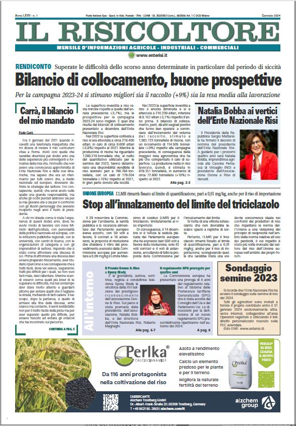 Pubblicato on-line "Il Risicoltore" di Gennaio 2024