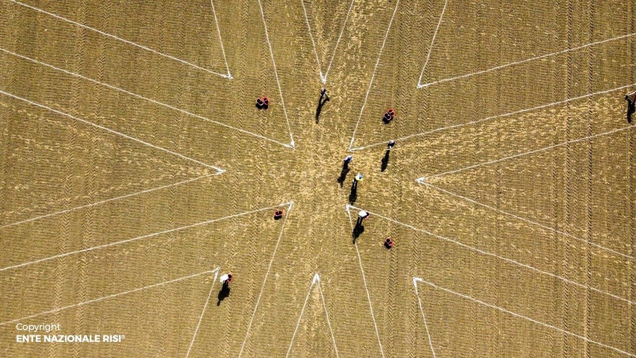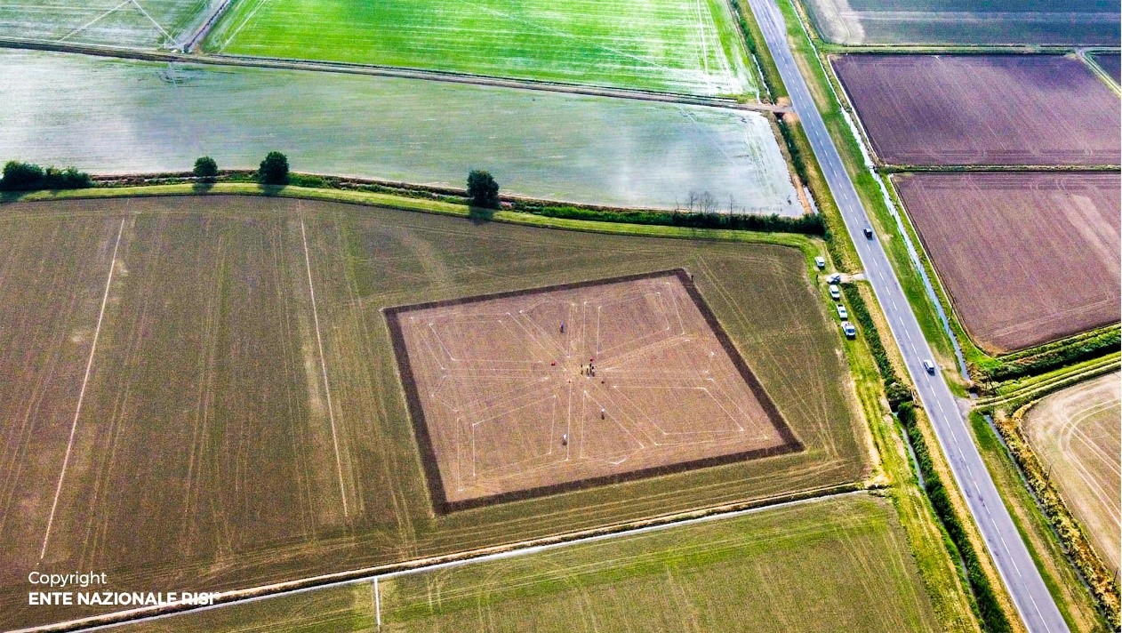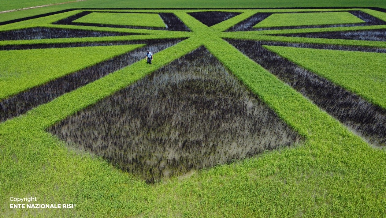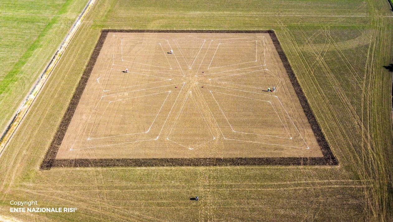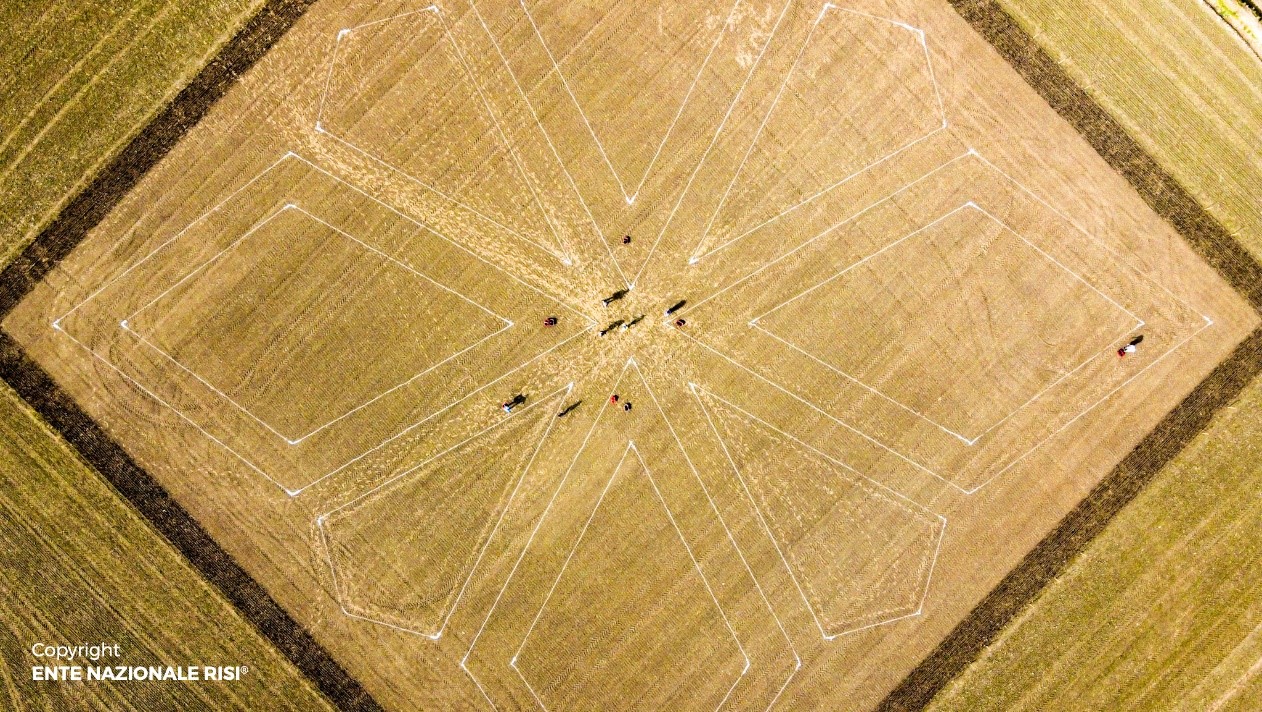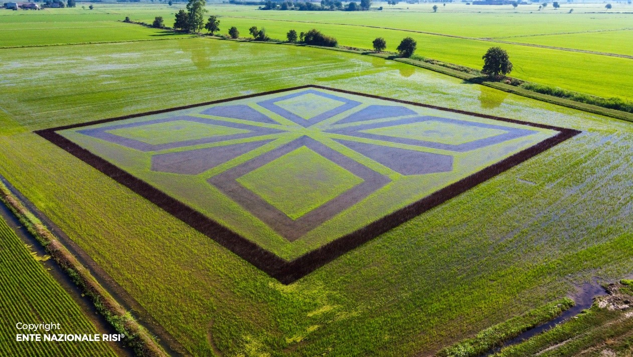 Nel 90° anniversario della propria istituzione, l'Ente Nazionale Risi ha voluto omaggiare il mondo del riso attraverso la complessa realizzazione di un disegno di riso in campo, appunto un Risegno.