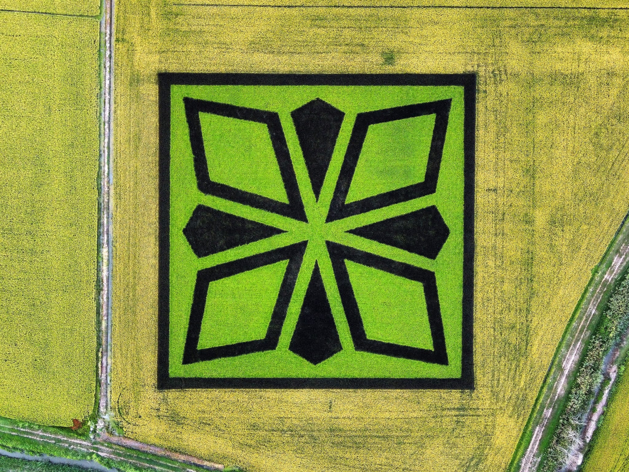 Un’enorme rosa dei venti stilizzata ha preso forma in risaia presso il Centro Ricerche sul Riso di Castello d'Agogna (PV). Tre diverse varietà di riso, a rappresentare l'intera filiera risicola, sono state meticolosamente seminate su una superficie di 6.400 metri quadrati, su progetto ed indicazioni del fotografo Livio Bourbon e ad opera dei tecnici e del personale dell'Ente.
