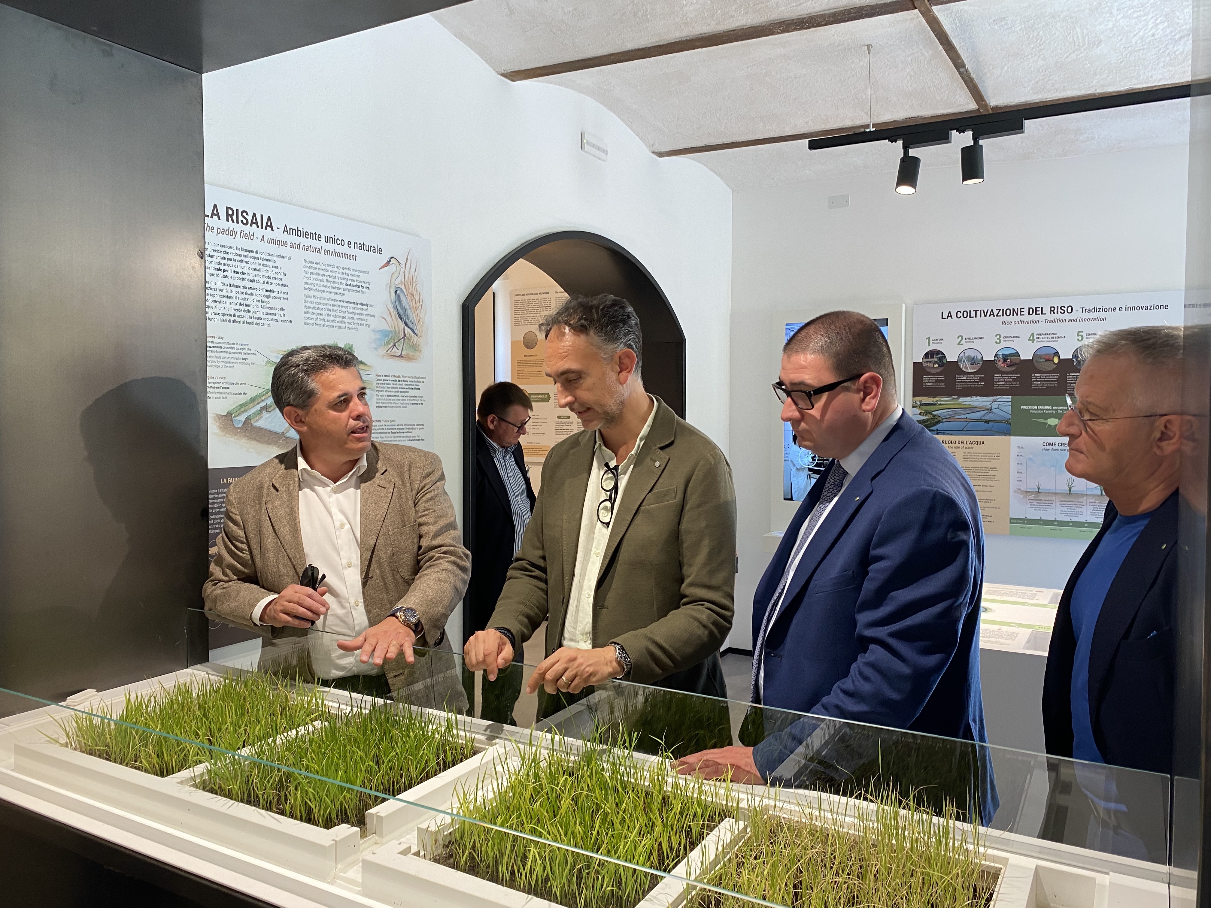 La visita è stata occasione utile per mostrare all’assessore le attività svolte dall’Ente nell’ambito della ricerca e a livello istituzionale, discutere brevemente delle problematiche che interessano la filiera risicola. La visita si è svolta nel pomeriggio del primo giugno, l’assessore si è fermato con molto interesse per alcune ore accompagnato dal sottosegretario Ruggero Invernizzi e dal consigliere Claudio Mangiarotti. La piccola delegazione inizialmente è stata accolta nella Kitchen Lab della Sala didattica dove il dott. Carrà ha presentato un Power Point sulle principali attività dell’Ente e i dati che contraddistinguono il nostro comparto - in particolare quello lombardo. La visita è proseguita alla scoperta del mondo del Riso italiano grazie al percorso interattivo con la realtà aumentata degli Oculus della sala per poi tornare alla realtà nei laboratori di ricerca, i Dipartimenti, la Banca del germoplasma e i campi sperimentali.