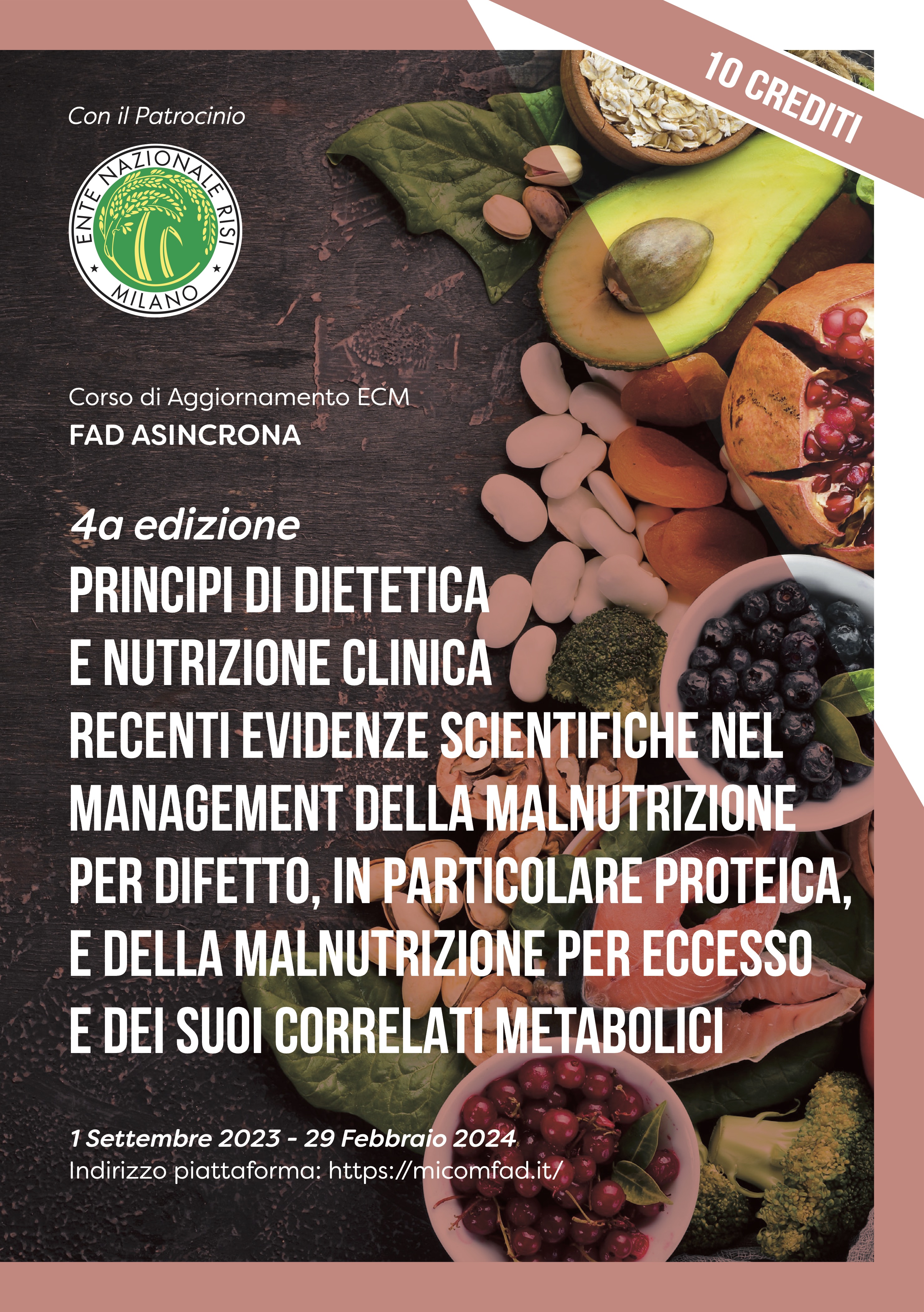 Per sei mesi, dal primo settembre 2023 al 29 febbraio 2024 sul provider accreditato MICOM alcune specifiche categorie del'ambito sanitario hanno potuto iscriversi al corso di aggiornamento ECM - Educazione Continua in Medicina erogato sotto forma di FAD - Formazione a Distanza Asincrona. Il corso voluto e finanziato da Ente Nazionale Risi nell’ambito delle iniziative volte a promuovere i risultati della ricerca sull’indice glicemico del riso italiano, ha visto alternarsi diversi esperti scientifici dell’ambito della nutrizione.