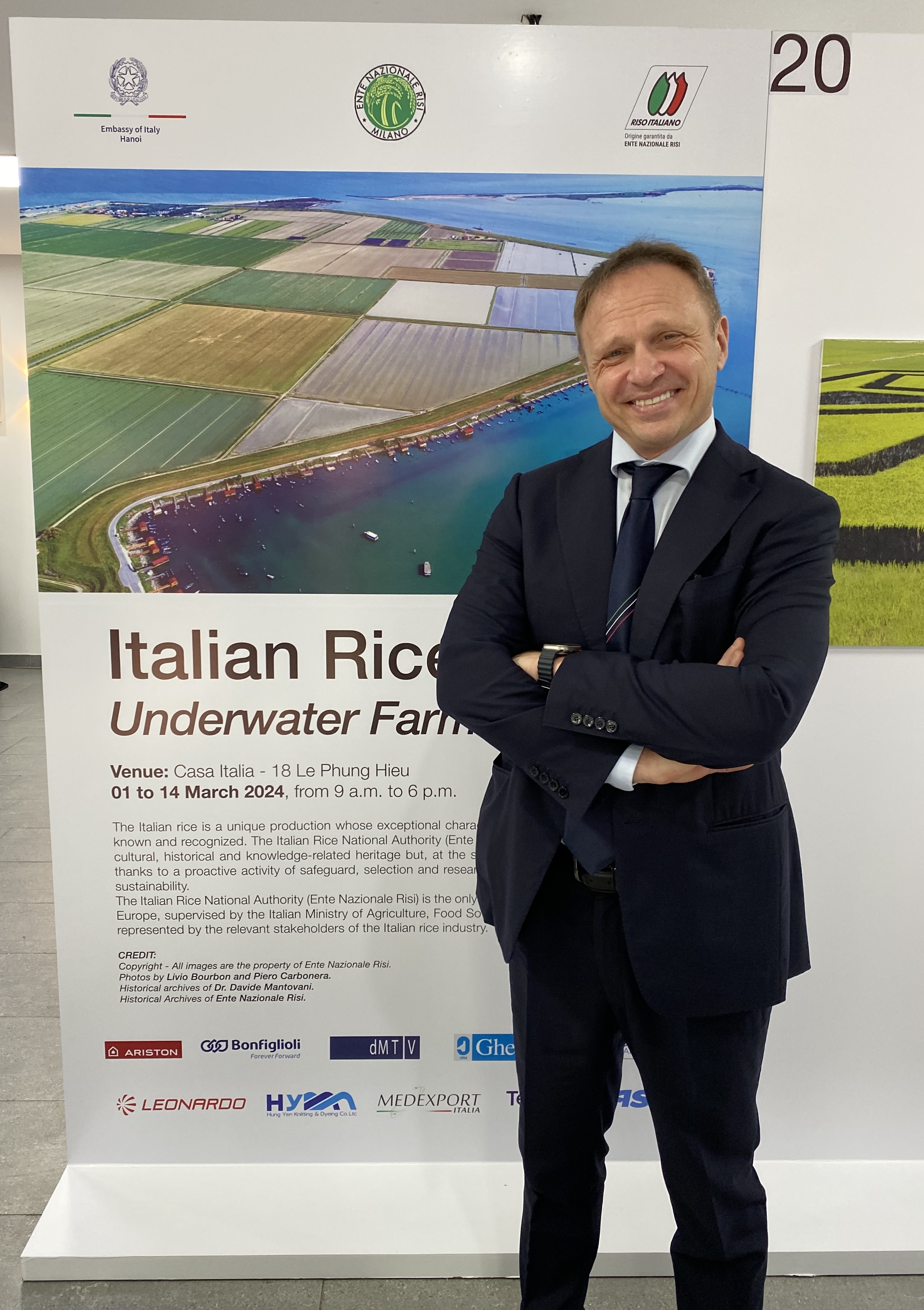 Si è tenuto lunedì 4 marzo presso Casa Italia l’evento di inaugurazione della mostra fotografica e audiovisiva “Italian Rice - Underwater Farming”. La mostra è stata inaugurata dall’ambasciatore italiano Marco della Seta in concomitanza con la visita istituzionale in Vietnam del Ministro dell’Agricoltura, della Sovranità Alimentare e delle Foreste, On. Francesco Lollobrigida.