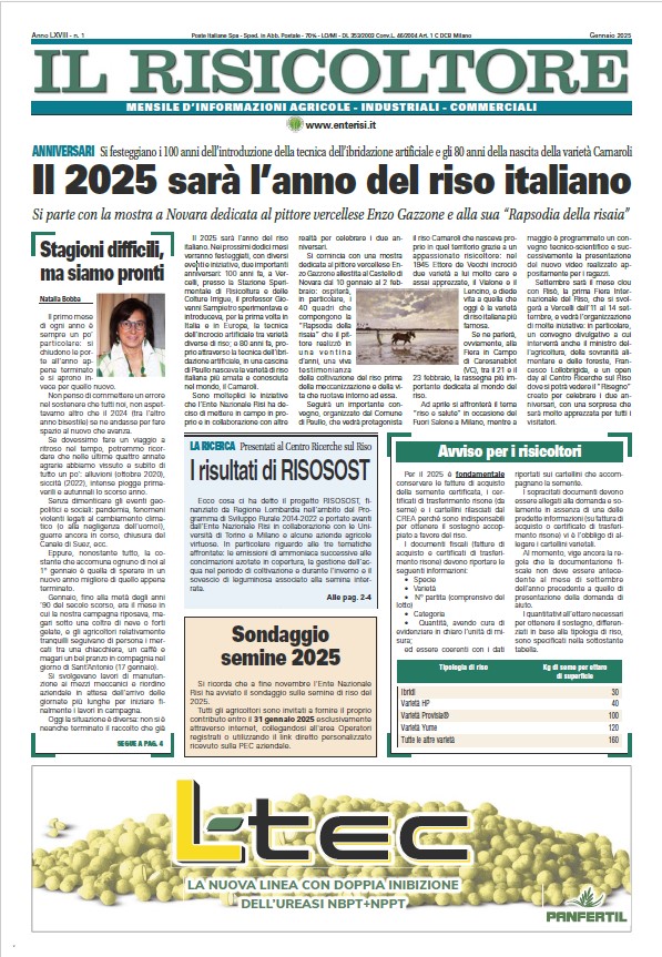 Pubblicato on-line "Il Risicoltore" di gennaio 2025