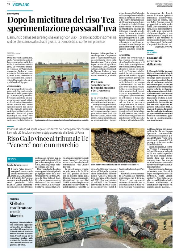 Dopo la mietitura del riso Tea sperimentazione passa all'uva lunedì 06 ottobre 2025 categoria: Economia Scarica il testo - formato jpg - 152 Kb