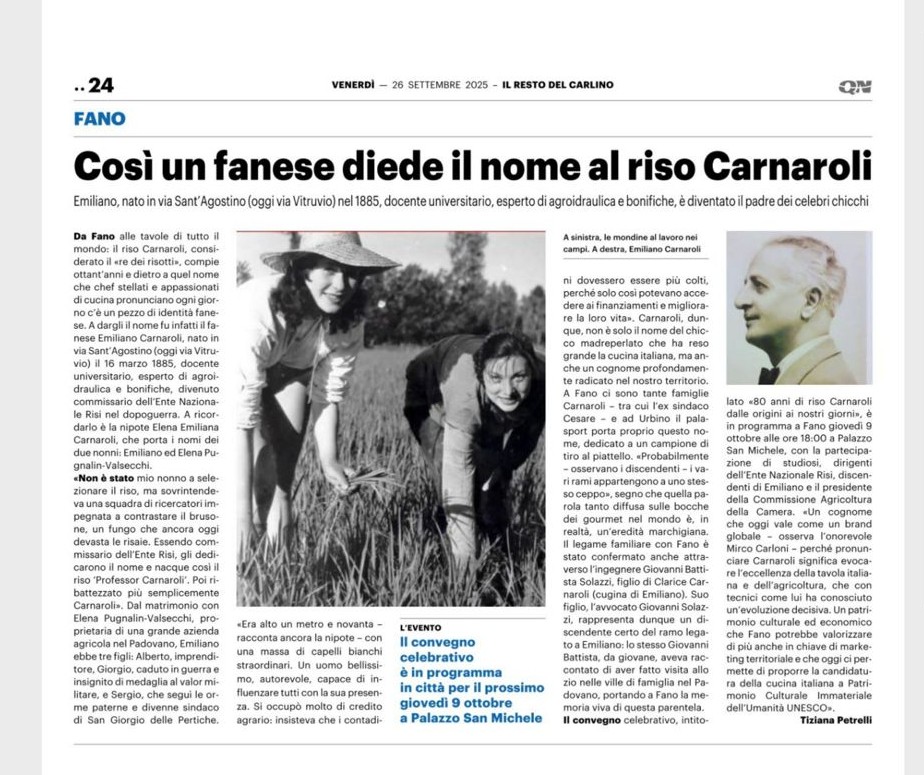Così un fanese diede il nome al riso Carnaroli mercoledì 08 ottobre 2025 categoria: Divulgazione Scarica il testo - formato jpg - 206 Kb